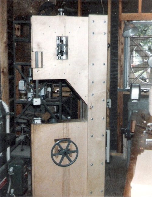 Jim Wheeler's bandsawJim Wheeler writes: "Hello, These are photos of my shop-built bandsaw. Please excuse the photo quality, as they were shot with a film camera years ago and later scanned into the computer. I hope they come through okay.