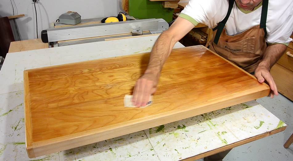 Here I'm re-varnishing the top for a dresser. The old varnish was an oil