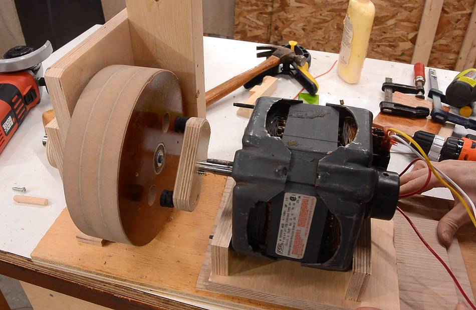 The way the motor is coupled to the lower wheel is complicated. I should have just mounted the lower wheel directly to the motor shaft. And it's because of these flaws that I never drew a set of plans for it. A belt grinder is a metal working tools, and metal workers prefer to make their tools out of metal, naturally.