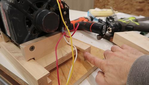 You can also see the motor mount I'm making. A block attached to the studs sticking out of the front of the motor, and another block screwed to the back of the motor.