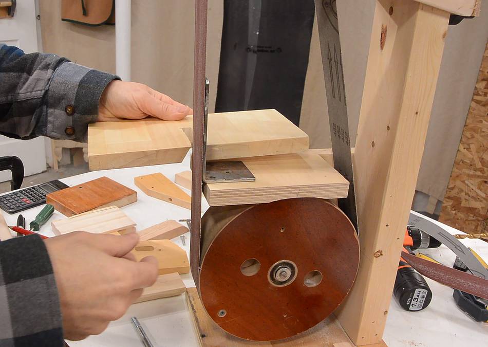 Now with a 1x42" sanding belt. I clamped a piece of wood