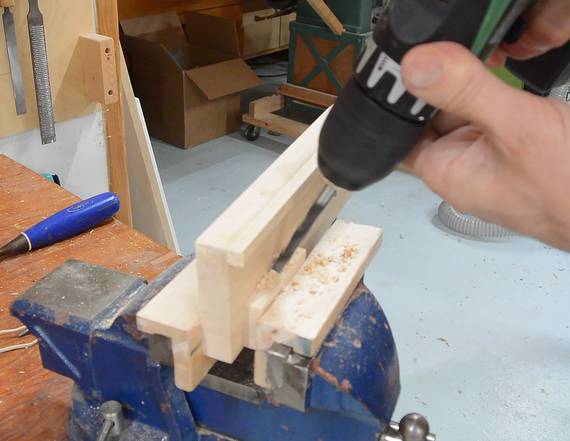 These require an elongated hole on the back, which I'm making by drilling overlapping holes with a Forstner bit.