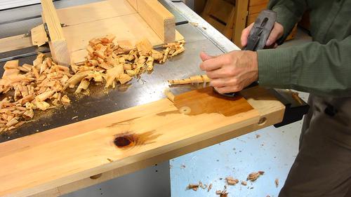 I'm cutting some mahogany veneer for the front, on the table saw. I'm using