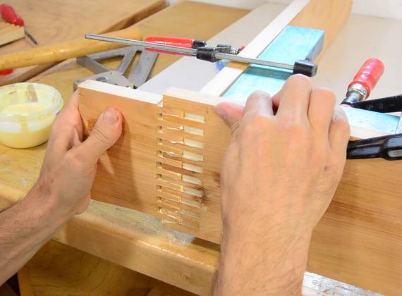 Finally, installing the bottom. The bottom fits into a rabbet on the front and