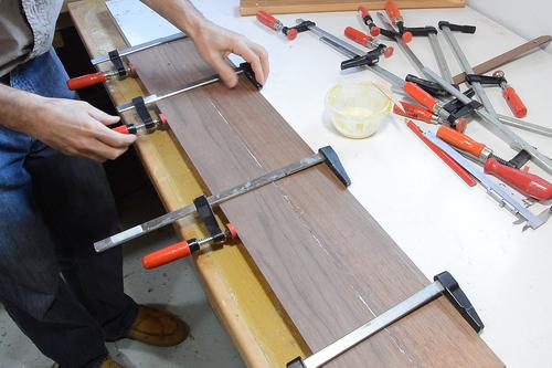 Re-gluing the pieces of wood to get pieces wide enough for the drawers.
