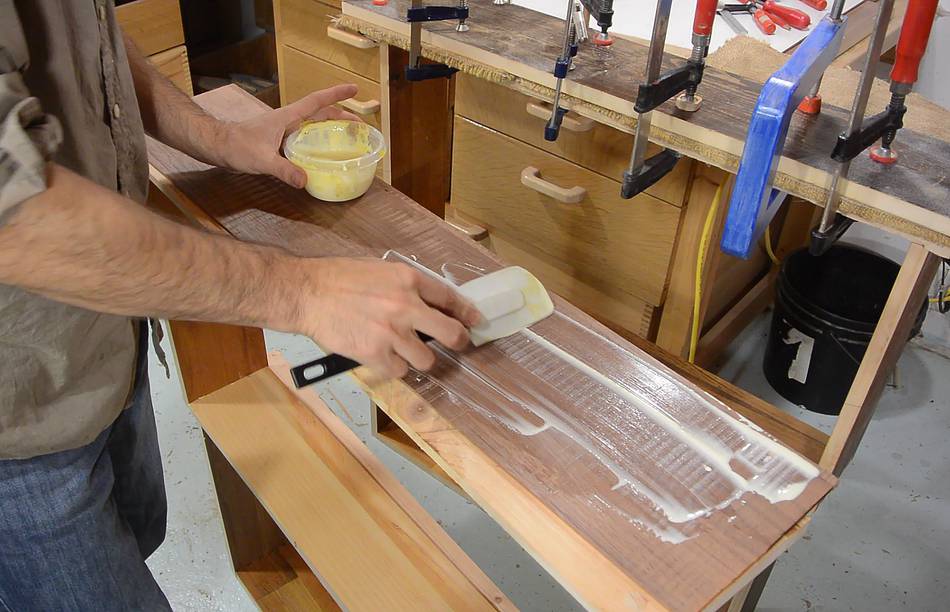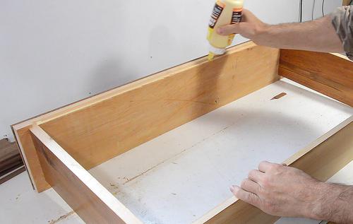 be glued. Here, I'm applying glue to add a strip of plywood over