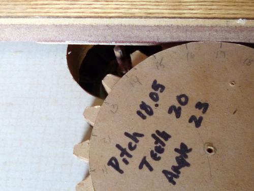 Initially I used an angle of 23°, a pitch of 12.7mm and 20 teeth.
