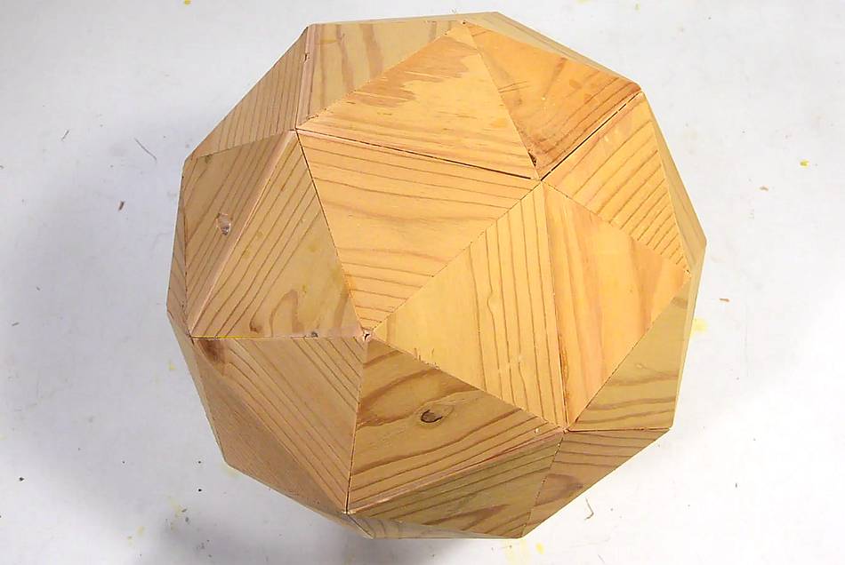 That said, the whole thing might have been easier to assemble with pocket holes than with tape. With pocket holes, I could really pull the pieces together. But pocket holes would have been a lot more work, and then I'd have ugly pocket holes all over the final ball.