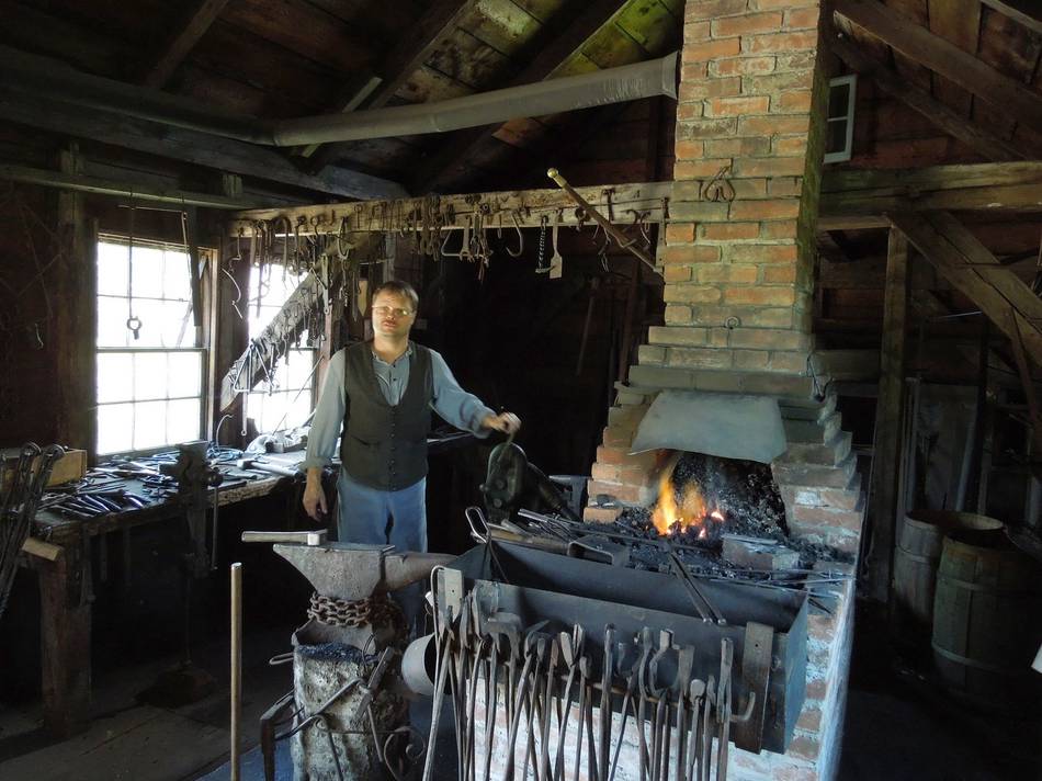 The blacksmith was working on making a draw knife, starting with a raw chunk of metal,