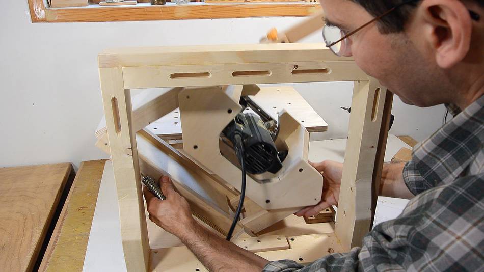 provides a 2:1 advantage, lifting up the router by the operating lever