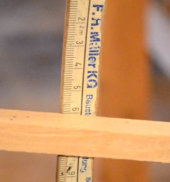 forward of it. The piece of wood, extending outwards to the white folding measure has about a