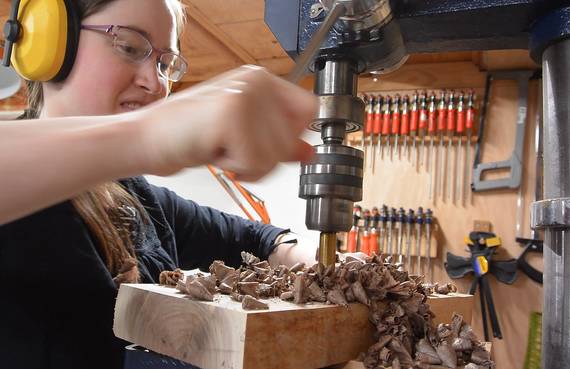 Lots of shavings coming out of this hole. Sucking it up with my small dust collector.
