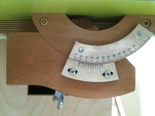 Since I don't have a decent hand plane, I made a sanding block and used that to ensure that all front faces were at the right angle. The round part of the clamping plates were shaped on the disk sander, rotating around on the peg. I made a holder out of wood for cutting the other side on the table saw.