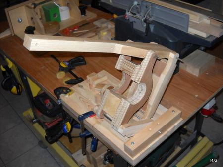 Ryszard's pantorouterRyszard writes: Hello Matthias, For the last 10 days I have been working on building the Pantorouter. Your device is designed very precisely. Its construction is well thought out and thoroughly tested. I think that you have spent many hours of work on the device to look as it does in the plans. Everything has got its justification. Actually, although I am an engineer, I did not have to improve anything. I made everything exactly following the plans and the videos on your website. It turned out perfectly. Your device is a gem – working on it was a real pleasure. I used a GKF 600 router (I think bought it under the name COLT) However I had to make some changes: instead of 19mm I used 18mm plywood since this was the only available; instead of maple I used pine and ash (the maple is not available in my area and I had some ash left). I did not buy knobs, instead I hand-made them - I could not find them for sale. I used the ball tracks from a computer keyboard drawer as tracks for the mobile table. They are solid, steel. I used additional balls out of the ball track bought on sale (now I need to use some other solution for the keyboard). All my machines and accompanying devices for the table saw and the router that I have been using so far worked perfectly while making the Pantorouter (you published most of them on the 19th March on your site). I could not stop working, I was so involved. You will probably notice that the electrical installation is more developed: I used a relay safety switch and a self-assembled electronic speed controller. The adjuster uses triac and a U2008B chip (purchased for DYI enthusiasts’ self-assembly) designed for the brush motors. The speed controller enables speed regulation from 5% to 95%. It also has a soft-start circuit. It uses an aluminium heat sink for cooling the triac. It can control motors up to 2.5kW. It's mounted up under the table as you can see on the pictures. Since I don’t like tangling cables, I added a cable holder on the side for coiling the cable, and a socket for the router and the light. I'm making some templates now, your instructions are invaluable here as well, very helpful and time efficient. I will be using an 8 mm spiral cutter and a corresponding 16 mm bearing on the copying lever. Best Regards, Ryszard