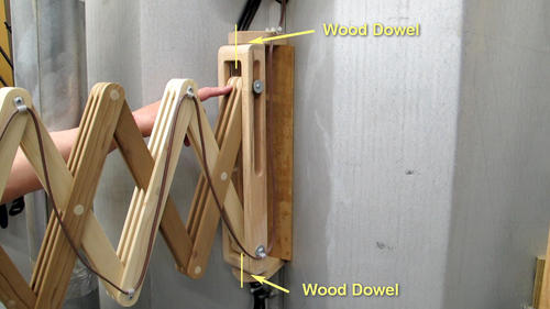The wall mount pivots on wood dowels at the top and bottom allowing the