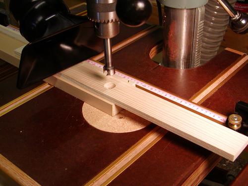 x 1-1/2" wide x 3/8" thick cut from a piece of 2x4. I used 5/8" dowel.