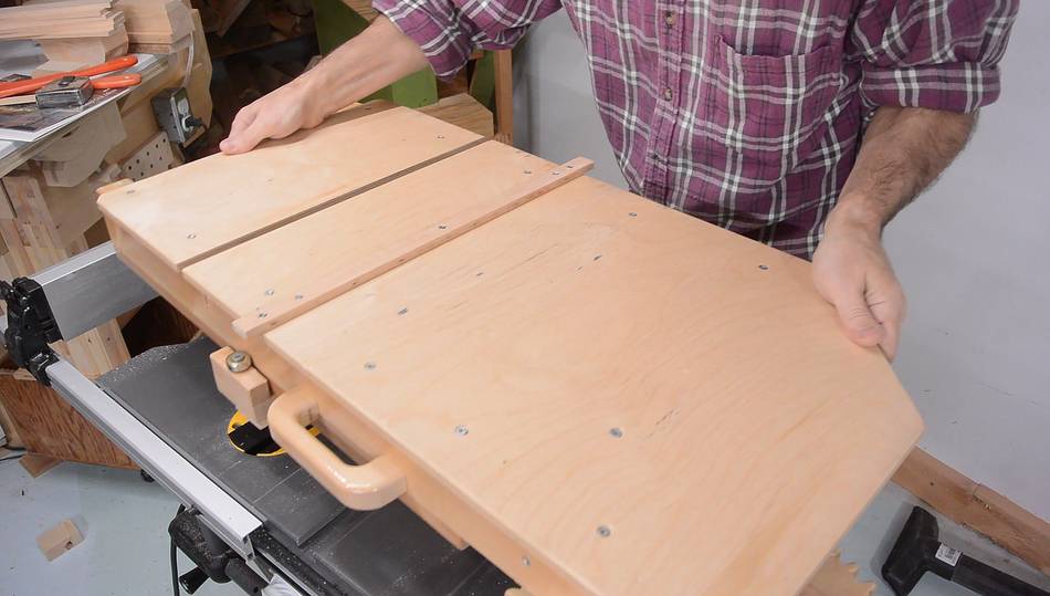 saw sled and started cutting slots into it. Into the second slot, the saw just