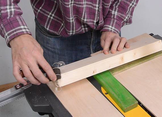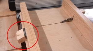 At this point, I could call the sled done. But on my other small sled I added this neat stop that prevents me from pushing it any further than I need to make the cut. It's a little toggle that gets caught on my outfeed table. But I don't have an outfeed table to hook onto on this table saw.