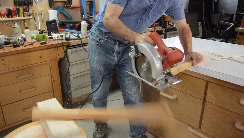 This is more dangerous with bigger pieces of wood, which tend to cause the saw to push itself back out of the cut. Coming backward out of the cut, the saw's blade guard will still be retracted so it could potentially cut your leg.
