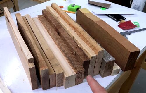Softest were Cedar (45 Kg), Pine (47 Kg), Spruce (55 Kg), Basswod (56 Kg)